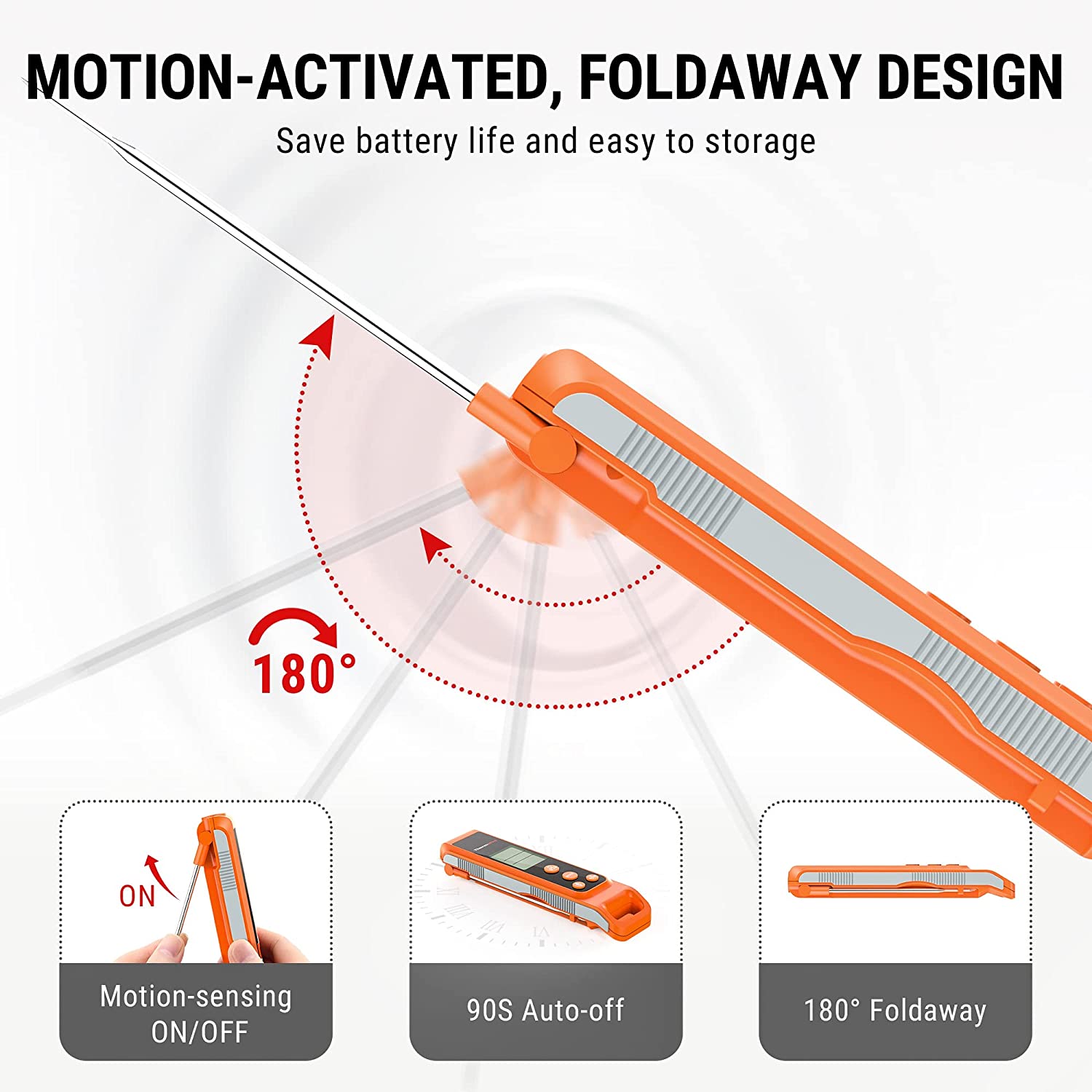 - User-Friendly : This cooking thermometer features a 180° foldable probe and large backlight to help you cook in any conditions; simply unfold the waterproof probe and the temperature will be displayed on this thermometer