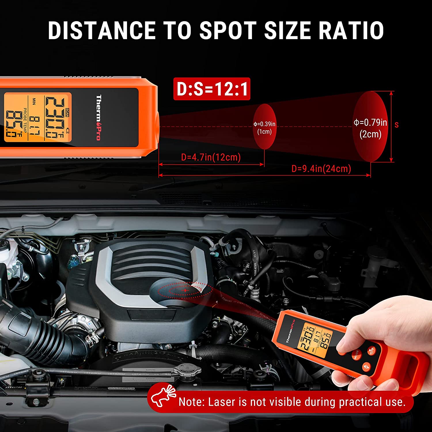 Safer Measuring with Thermopile Sensor :With its distance-to-spot ratio of 12:1 and a response time under 500Ms, this instant read thermometer for meat allows you to safely take fast and accurate readings of different surfaces from a greater distance; switch and display MAX/MIN/AVG results on this pyrometer