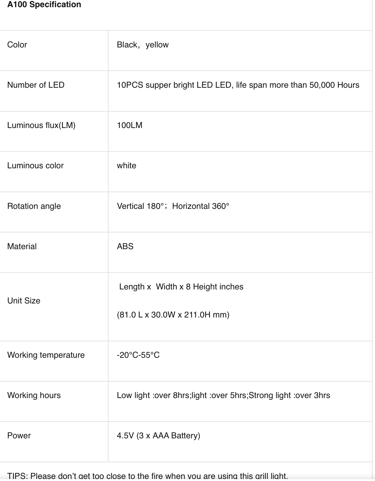 7.Versatile Use:Not just for grilling! This multi-purpose light is perfect for outdoor barbecues, camping, car repairs, and more. It also makes a great work light for mechanics and craftsmen.